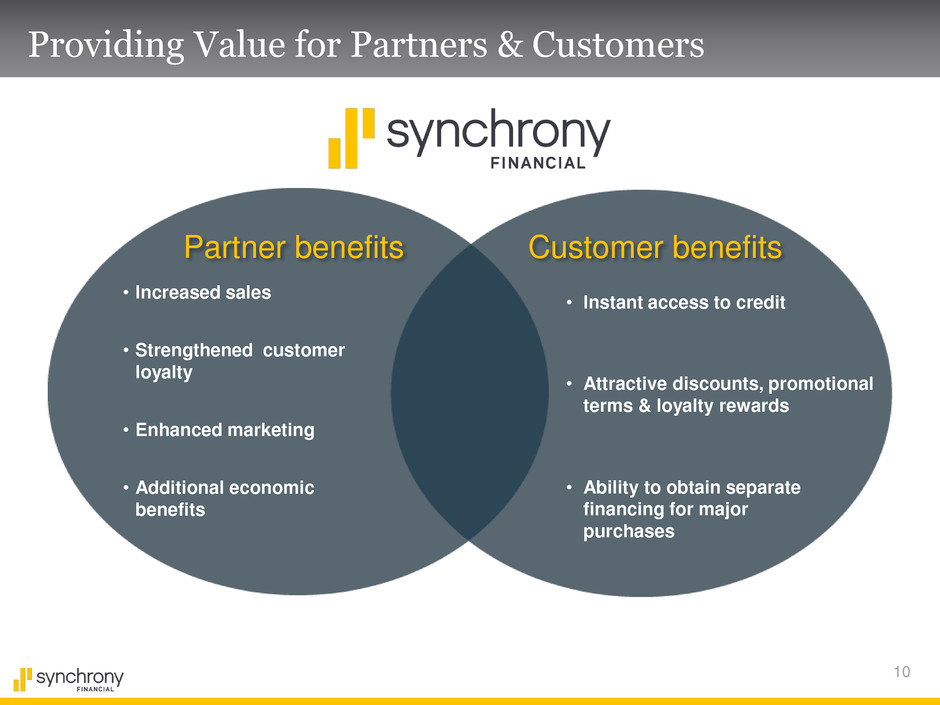 2 Disclaimers Cautionary Statement Regarding Forward-Looking Statements The following slides are part of a presentation by Synchrony Financial and are intended to be viewed as part of that presentation. No representation is made that the information in these slides is complete. This presentation contains certain forward-looking statements as defined in Section 27A of the Securities Act of 1933, as amended, and Section 21E of the Securities Exchange Act of 1934, as amended, which are subject to the “safe harbor” created by those sections. Forward-looking statements may be identified by words such as “outlook,” “expects,” “intends,” “anticipates,” “plans,” “believes,” “seeks,” “targets,” “estimates,” “will,” “should,” “may” or words of similar meaning, but these words are not the exclusive means of identifying forward-looking statements. Forward-looking statements are based on management’s current expectations and assumptions, and are subject to inherent uncertainties, risks and changes in circumstances that are difficult to predict. As a result, actual results could differ materially from those indicated in these forward-looking statements. Factors that could cause actual results to differ materially include global political, economic, business, competitive, market, regulatory and other factors and risks, such as: the impact of macroeconomic conditions and whether industry trends we have identified develop as anticipated; retaining existing partners and attracting new partners, concentration of our platform revenue in a small number of Retail Card partners, promotion and support of our products by our partners, and financial performance of our partners; our need for additional financing, higher borrowing costs and adverse financial market conditions impacting our funding and liquidity, and any reduction in our credit ratings; our ability to securitize our loans, occurrence of an early amortization of our securitization facilities, loss of the right to service or subservice our securitized loans, and lower payment rates on our securitized loans; our reliance on dividends, distributions and other payments from Synchrony Bank; our ability to grow our deposits in the future; changes in market interest rates and the impact of any margin compression; effectiveness of our risk management processes and procedures, reliance on models which may be inaccurate or misinterpreted, our ability to manage our credit risk, the sufficiency of our allowance for loan losses and the accuracy of the assumptions or estimates used in preparing our financial statements; our ability to offset increases in our costs in retailer share arrangements; competition in the consumer finance industry; our concentration in the U.S. consumer credit market; our ability to successfully develop and commercialize new or enhanced products and services; our ability to realize the value of strategic investments; reductions in interchange fees; fraudulent activity; cyber-attacks or other security breaches; failure of third parties to provide various services that are important to our operations; disruptions in the operations of our computer systems and data centers; international risks and compliance and regulatory risks and costs associated with international operations; alleged infringement of intellectual property rights of others and our ability to protect our intellectual property; litigation and regulatory actions; damage to our reputation; our ability to attract, retain and motivate key officers and employees; tax legislation initiatives or challenges to our tax positions and state sales tax rules and regulations; significant and extensive regulation, supervision, examination and enforcement of our business by governmental authorities, the impact of the Dodd-Frank Act and the impact of the CFPB’s regulation of our business; changes to our methods of offering our CareCredit products; impact of capital adequacy rules; restrictions that limit Synchrony Bank’s ability to pay dividends; regulations relating to privacy, information security and data protection; use of third-party vendors and ongoing third-party business relationships; failure to comply with anti-money laundering and anti-terrorism financing laws; effect of General Electric Capital Corporation being subject to regulation by the Federal Reserve Board both as a savings and loan holding company and as a systemically important financial institution; General Electric Company (“GE”) not completing the separation from us as planned or at all, GE’s inability to obtain savings and loan holding company deregistration (“GE SLHC Deregistration”) and GE continuing to have significant control over us; completion by the Federal Reserve Board of a review (with satisfactory results) of our preparedness to operate on a standalone basis, independently of GE, and Federal Reserve Board approval required for us to continue to be a savings and loan holding company, including the timing of the approval and the imposition of any significant additional capital or liquidity requirements; our need to establish and significantly expand many aspects of our operations and infrastructure; delays in receiving or failure to receive Federal Reserve Board agreement required for us to be treated as a financial holding company after the GE SLHC Deregistration; loss of association with GE’s strong brand and reputation; limited right to use the GE brand name and logo and need to establish a new brand; GE has significant control over us; terms of our arrangements with GE may be more favorable than what we will be able to obtain from unaffiliated third parties; obligations associated with being a public company; our incremental cost of operating as a standalone public company could be substantially more than anticipated; GE could engage in businesses that compete with us, and conflicts of interest may arise between us and GE; and failure ca