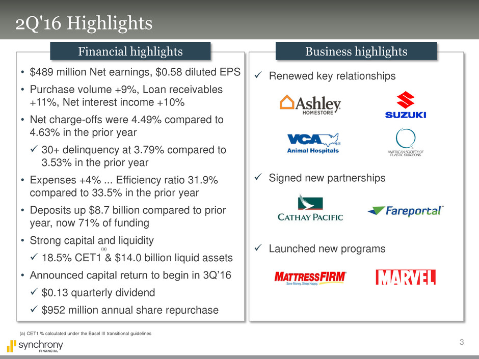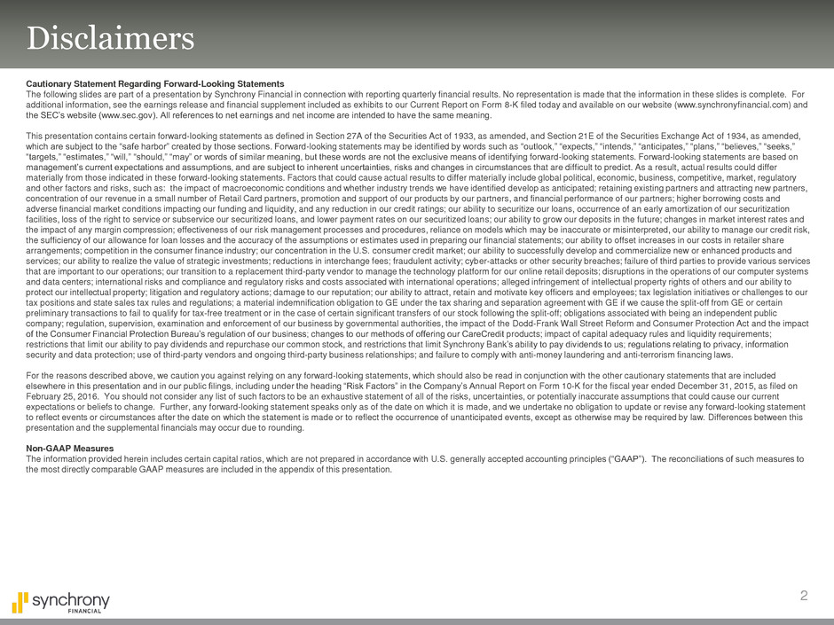 The following slides are part of a presentation by Synchrony Financial in connection with reporting quarterly financial results. No representation is made that the information in these slides is complete. For