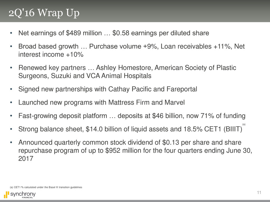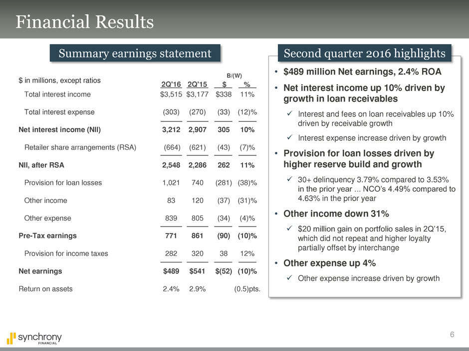 additional information, see the earnings release and financial supplement included as exhibits to our Current Report on Form 8-K filed today and available on our website (www.synchronyfinancial.com) and