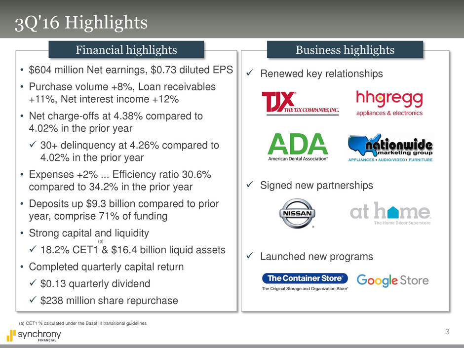 The following slides are part of a presentation by Synchrony Financial in connection with reporting quarterly financial results. No representation is made that the information in these slides is complete. For
