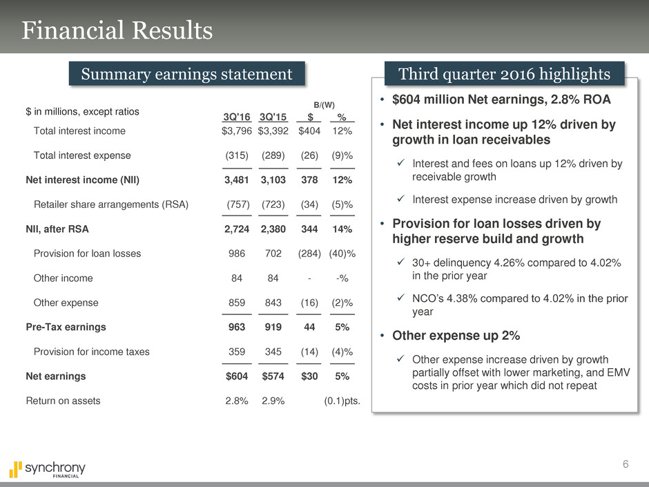 additional information, see the earnings release and financial supplement included as exhibits to our Current Report on Form 8-K filed today and available on our website (www.synchronyfinancial.com) and