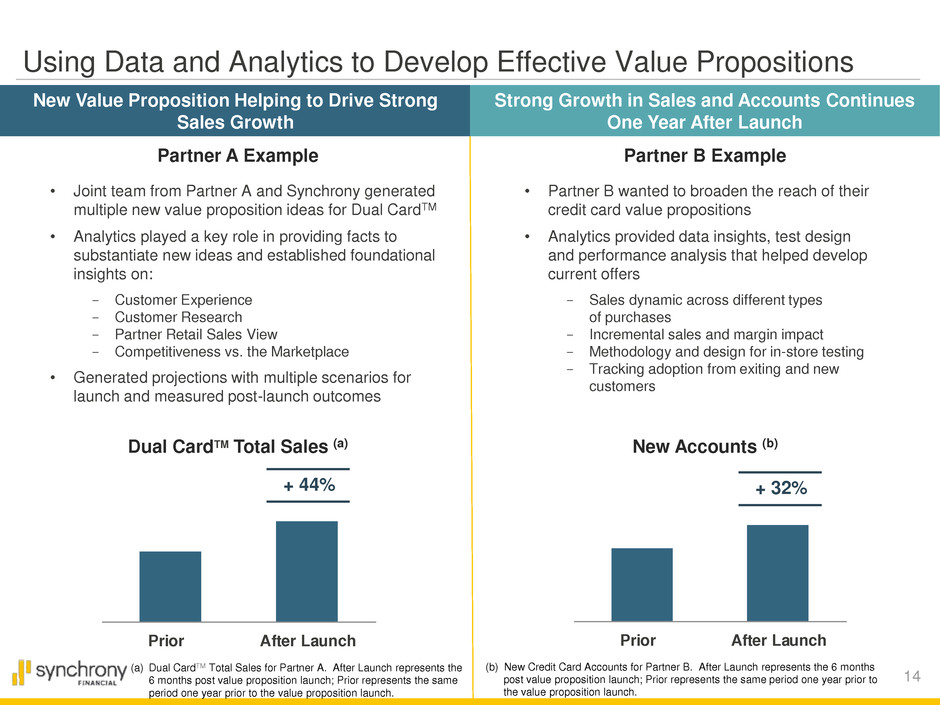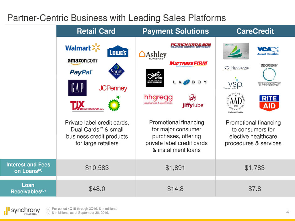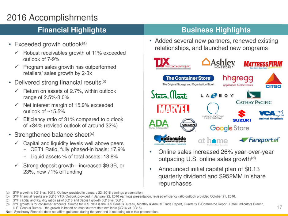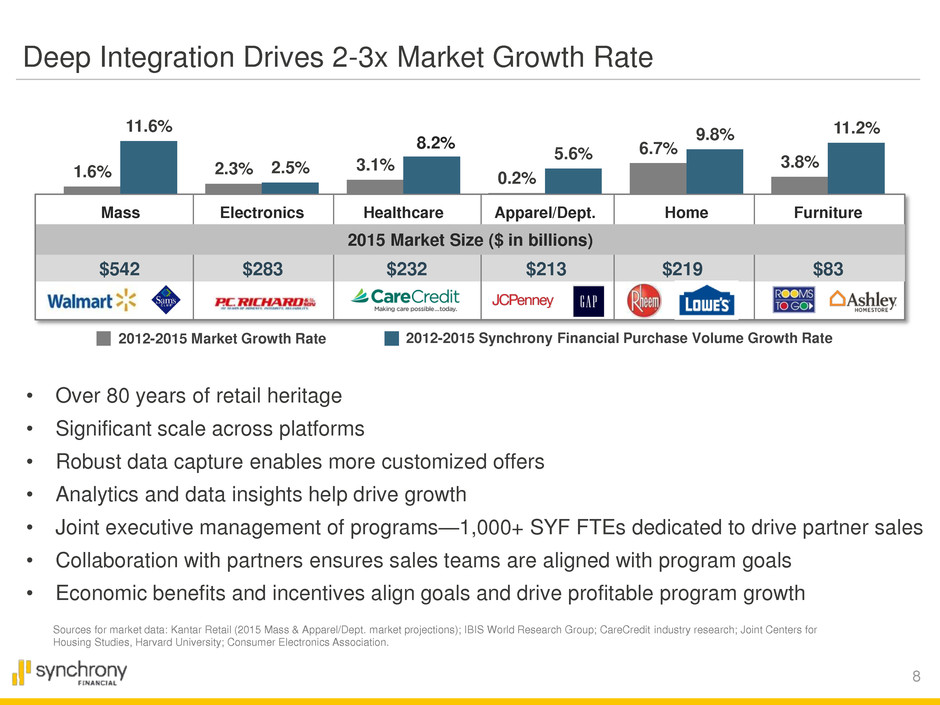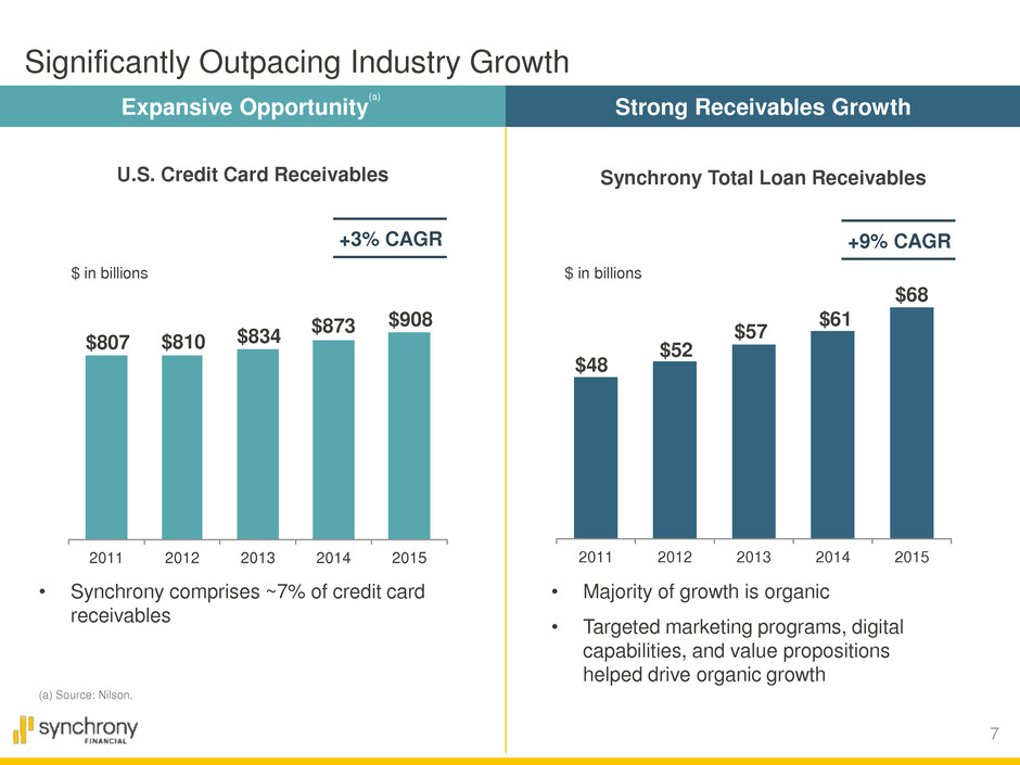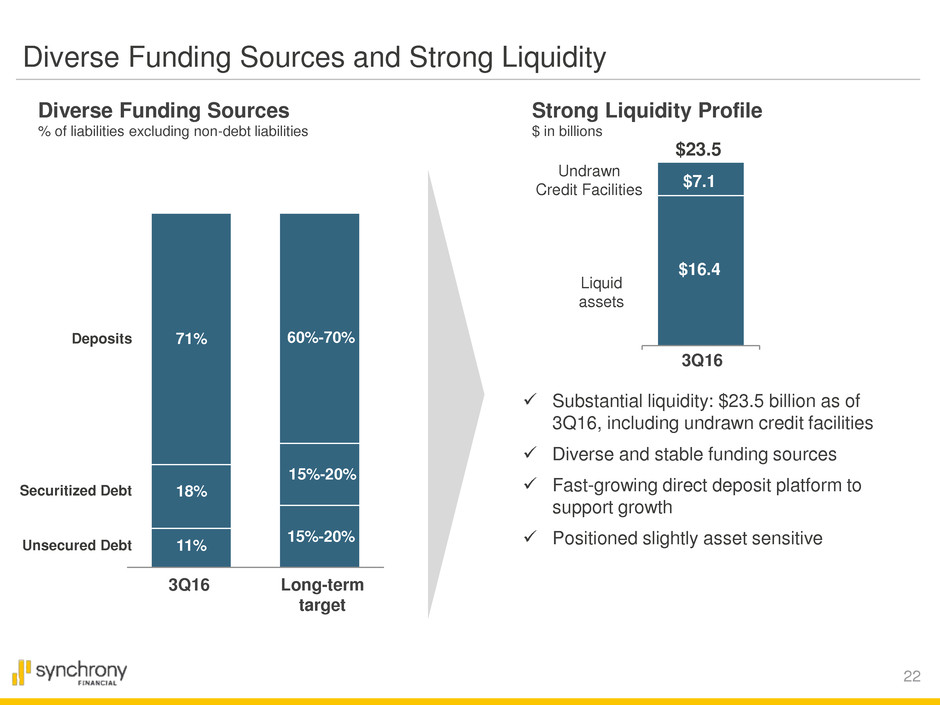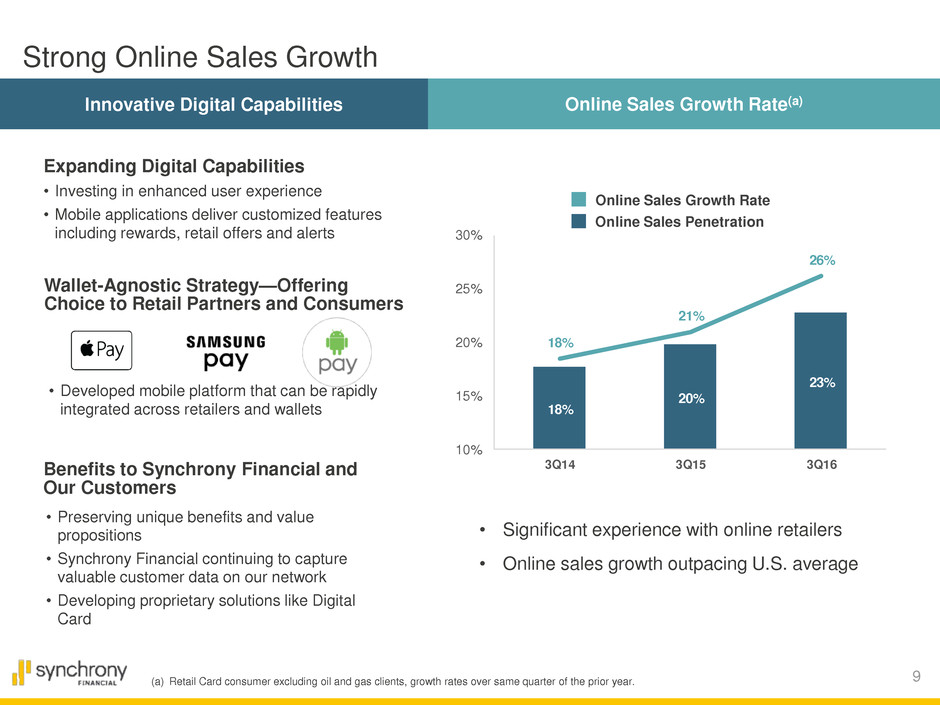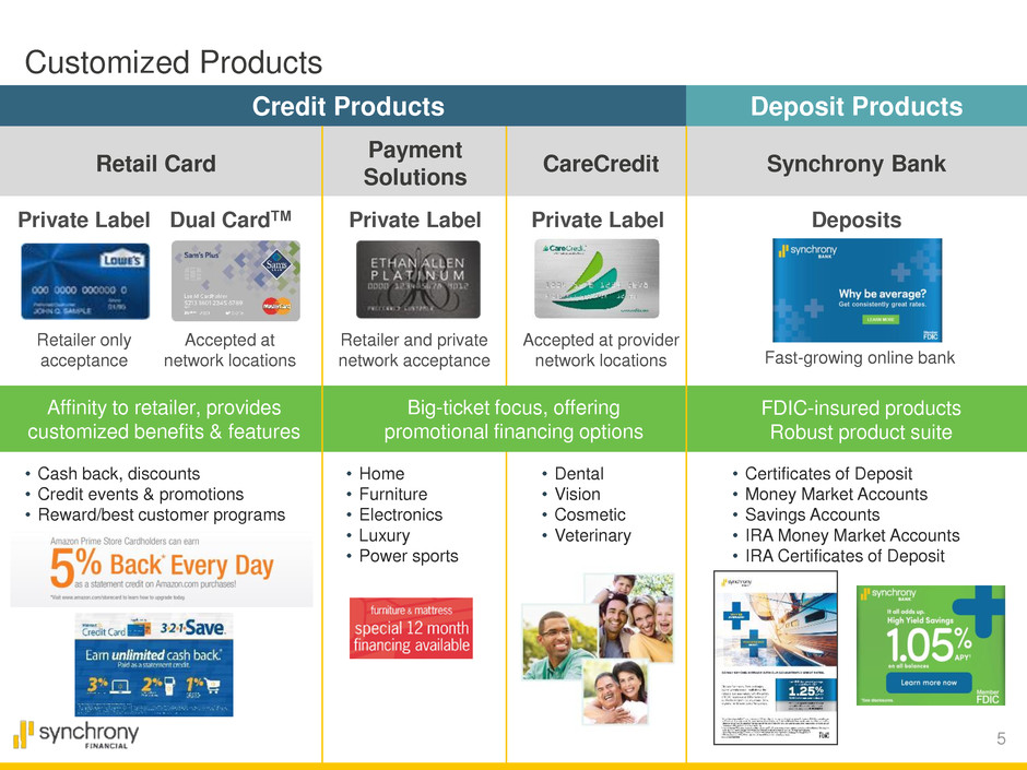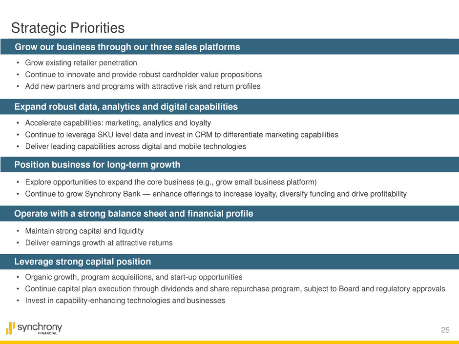 • Continue to grow Synchrony Bank — enhance offerings to increase loyalty, diversify funding and drive profitability