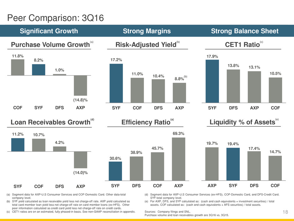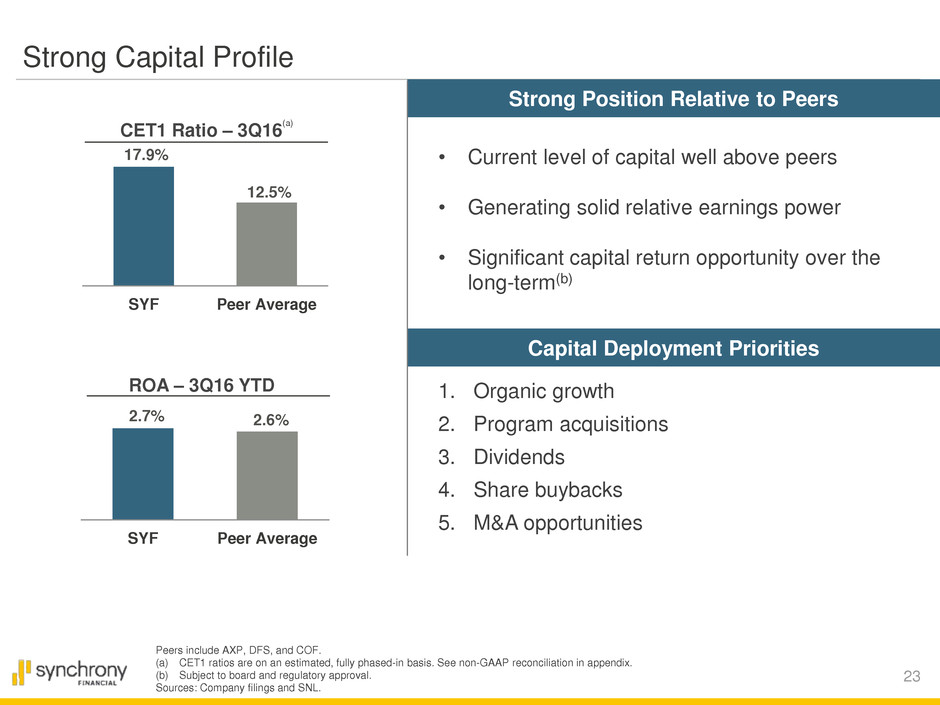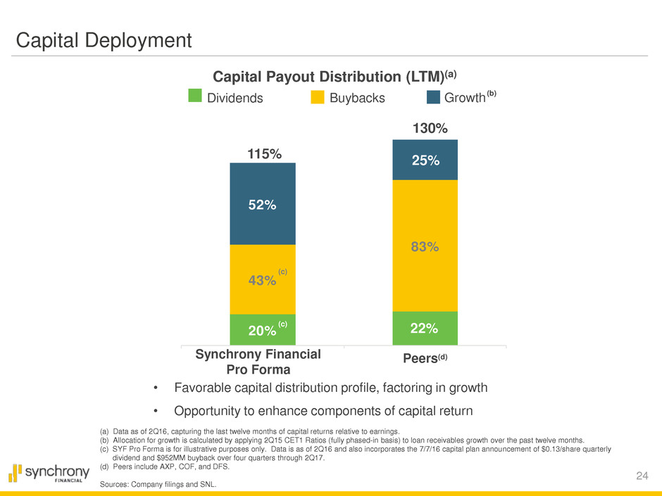 (c) SYF Pro Forma is for illustrative purposes only. Data is as of 2Q16 and also incorporates the 7/7/16 capital plan announcement of $0.13/share quarterly