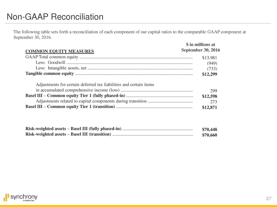 calculated on a fully phased-in basis, to the comparable GAAP component at September 30, 2016 is included at the end of this presentation in “Appendix-Non-GAAP Reconciliations.”