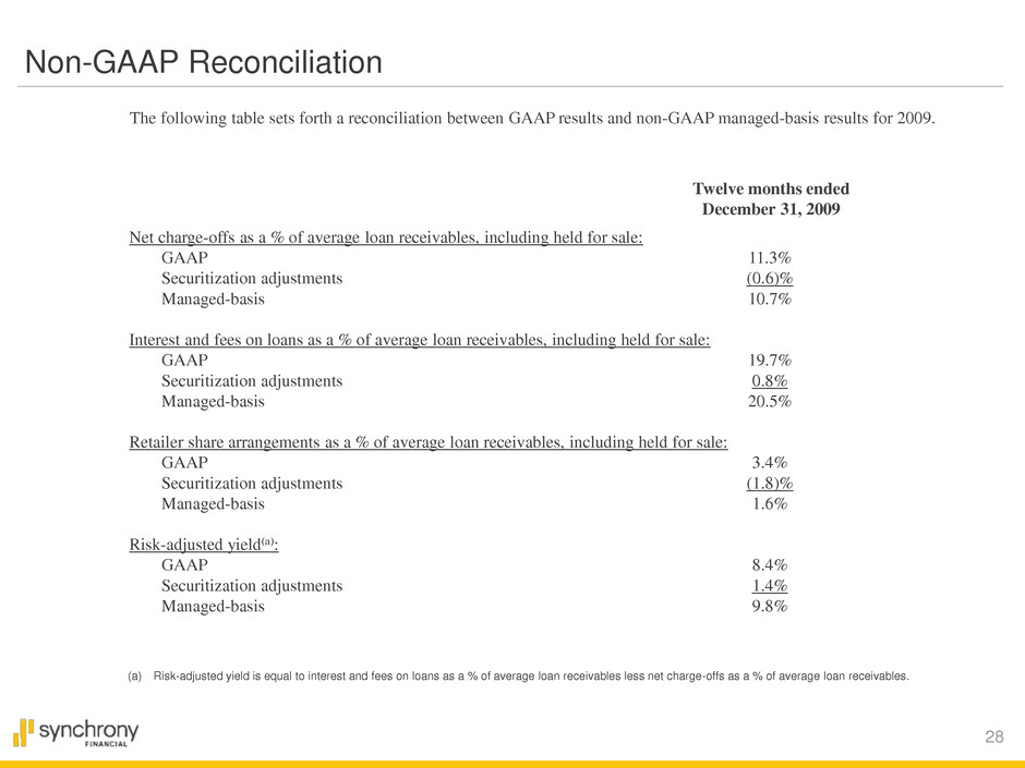 same manner without regard to ownership of the loans. The reconciliation of the managed-basis loan performance measures in this presentation to the comparable GAAP measures for the twelve months ended