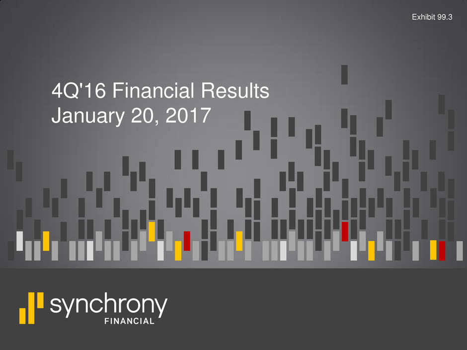 The following slides are part of a presentation by Synchrony Financial in connection with reporting quarterly financial results. No representation is made that the information in these slides is complete. For