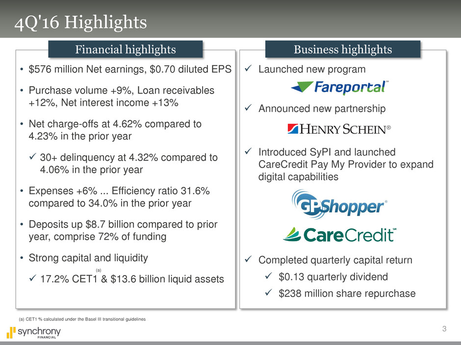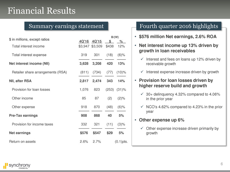 additional information, see the earnings release and financial supplement included as exhibits to our Current Report on Form 8-K filed today and available on our website (www.synchronyfinancial.com) and