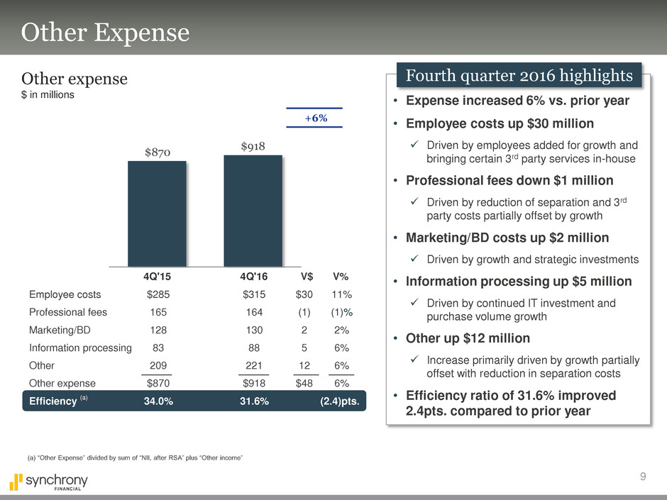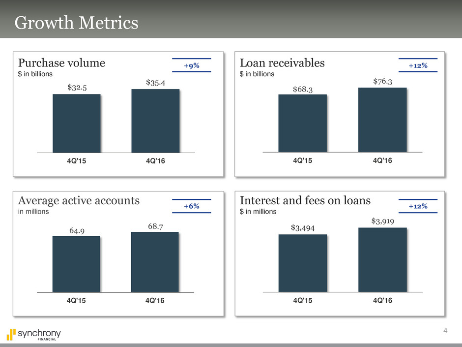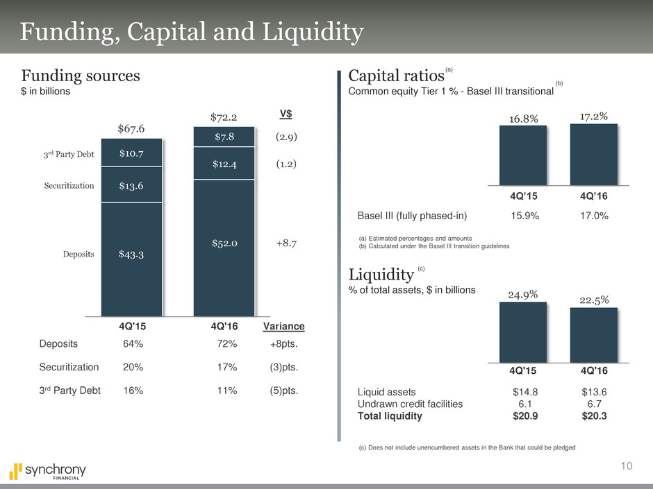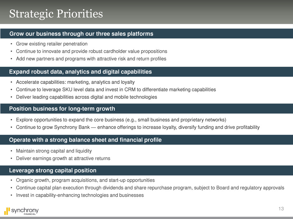• Continue to grow Synchrony Bank — enhance offerings to increase loyalty, diversify funding and drive profitability