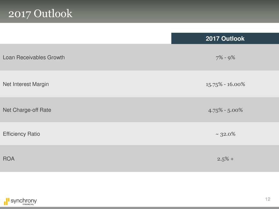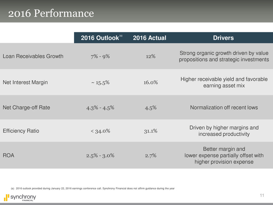 (a) 2016 outlook provided during January 22, 2016 earnings conference call. Synchrony Financial does not affirm guidance during the year