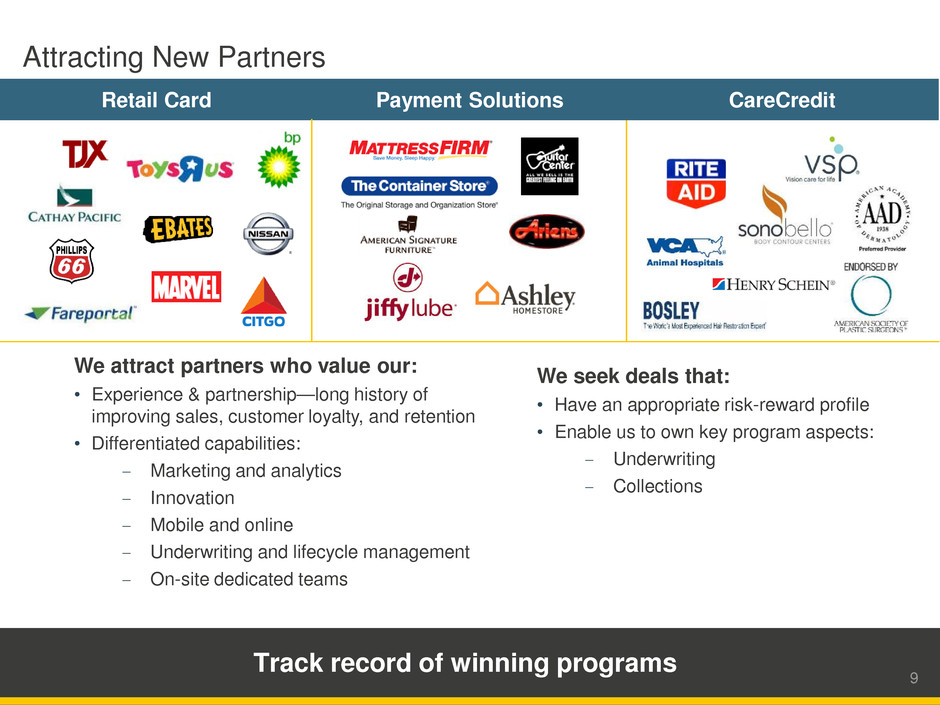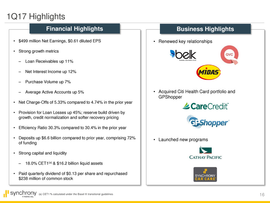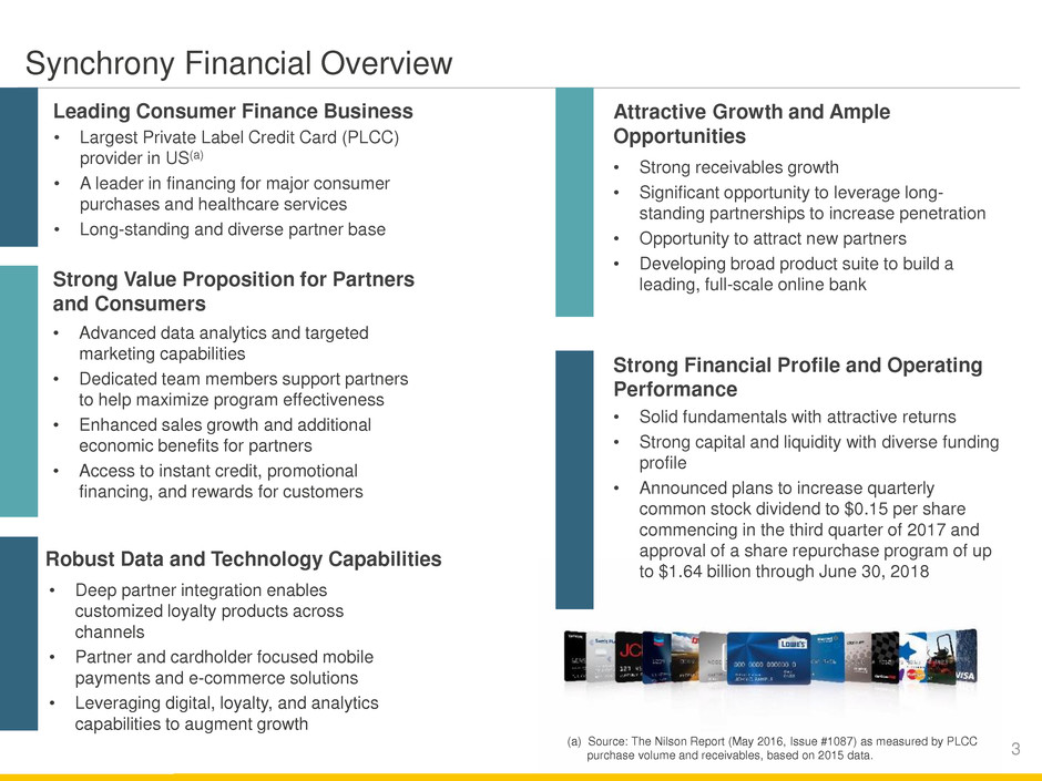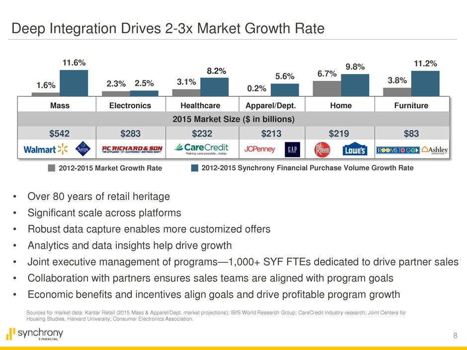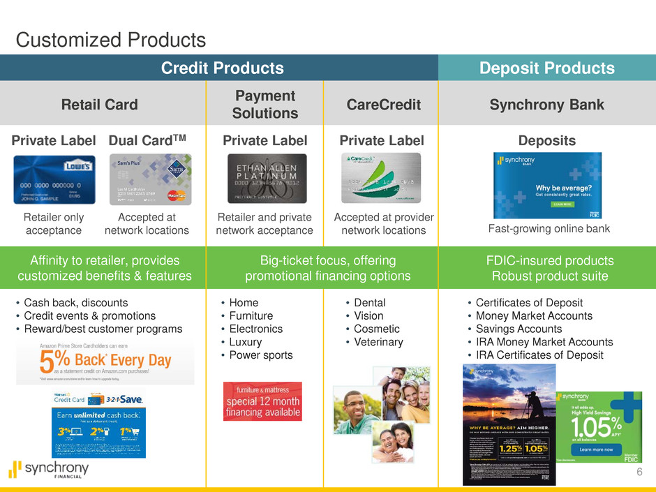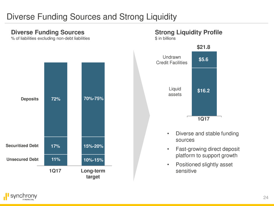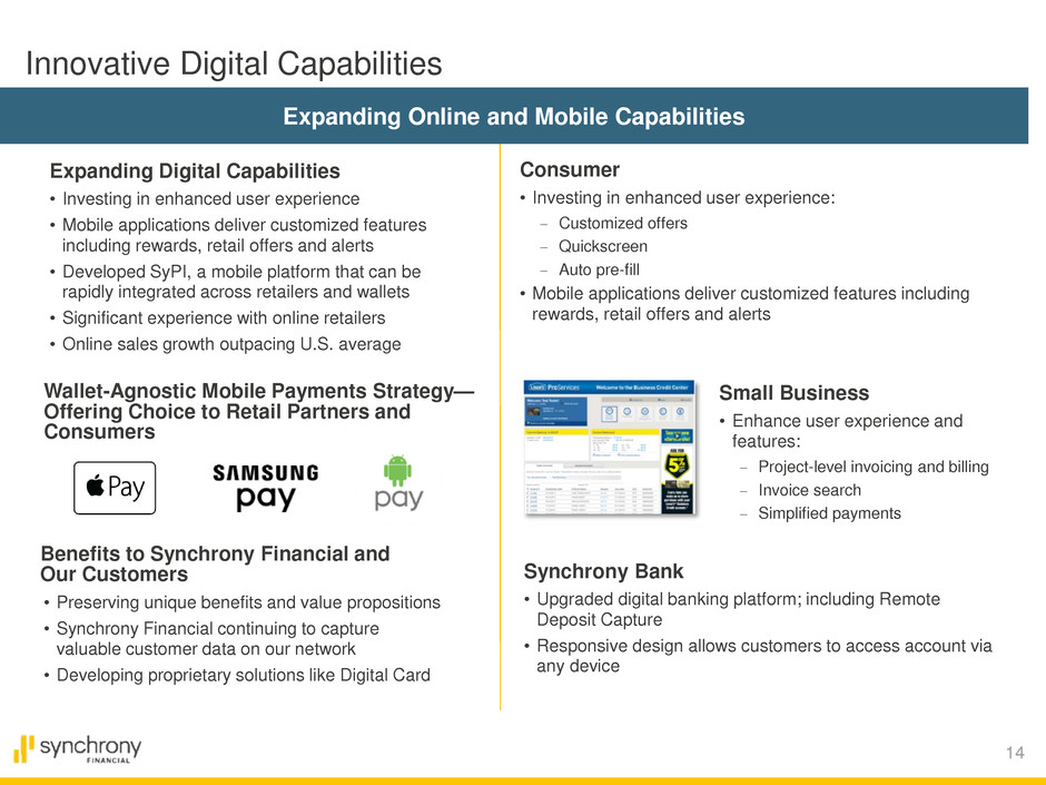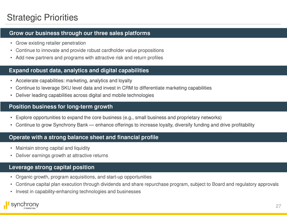 • Continue to grow Synchrony Bank — enhance offerings to increase loyalty, diversify funding and drive profitability