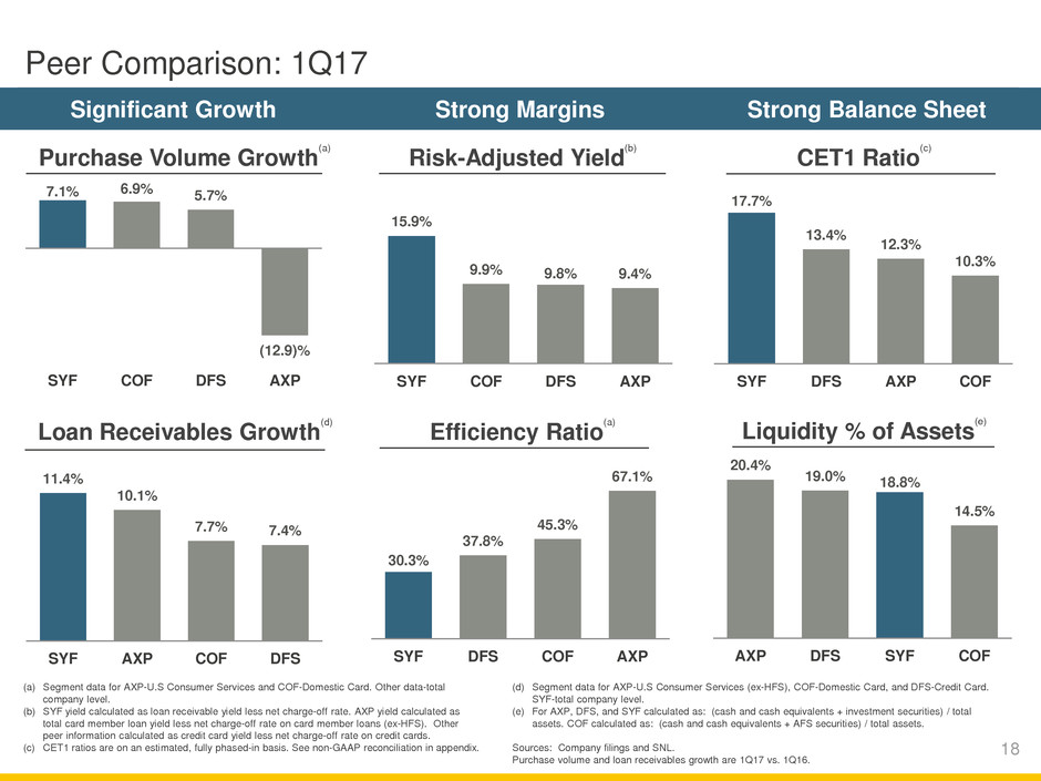 (c) Data as of 1Q17, capturing the last four quarters of capital returns relative to earnings. Peers include AXP, COF, and DFS.