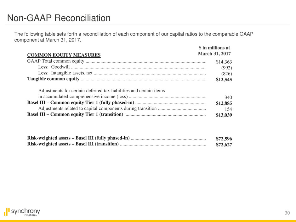 2016 SYF Capital Plan 2017 SYF Capital Plan Peers