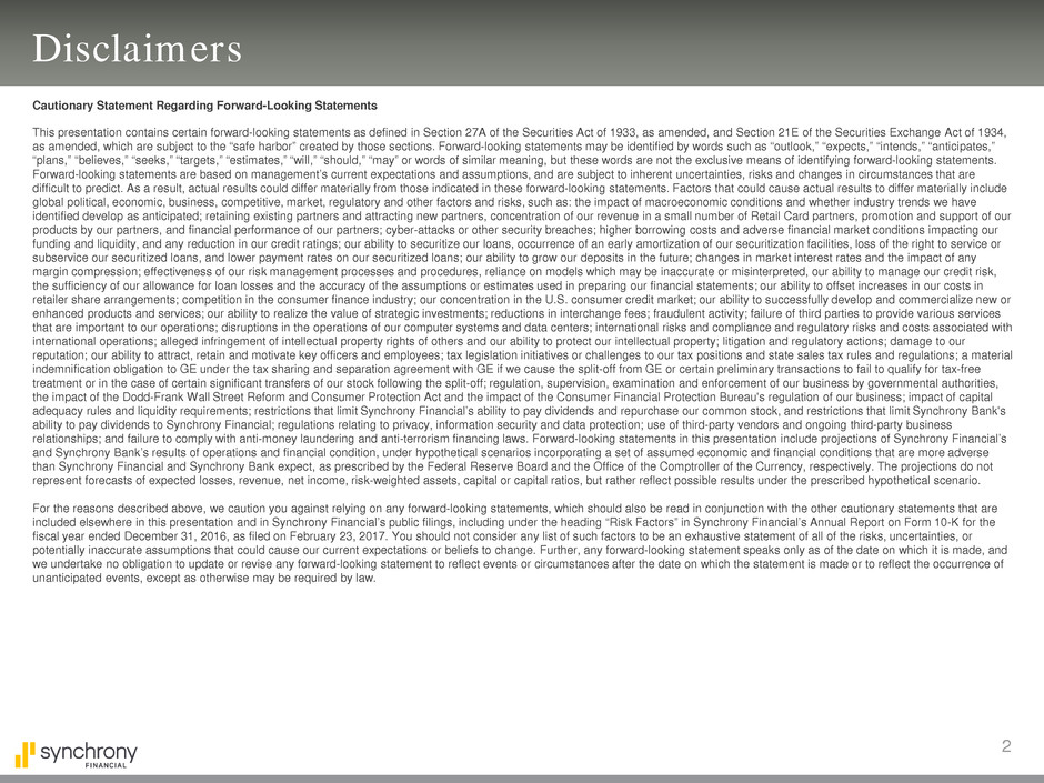 included elsewhere in this presentation and in Synchrony Financial’s public filings, including under the heading “Risk Factors” in Synchrony Financial’s Annual Report on Form 10-K for the