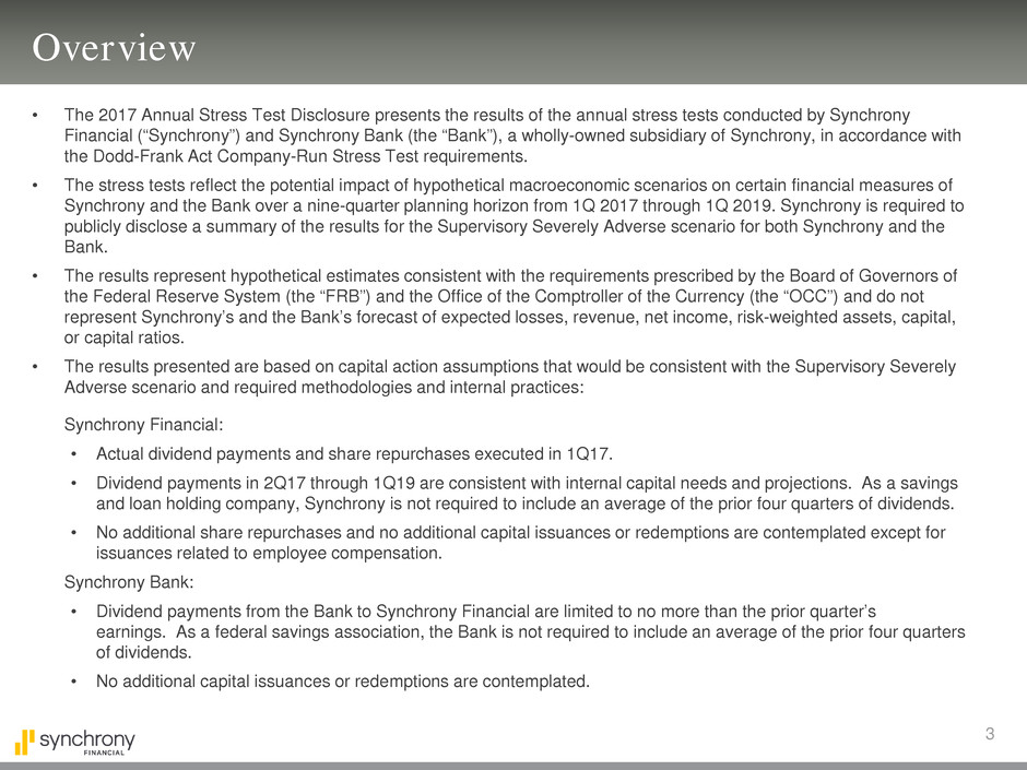 • The 2017 Annual Stress Test Disclosure presents the results of the annual stress tests conducted by Synchrony