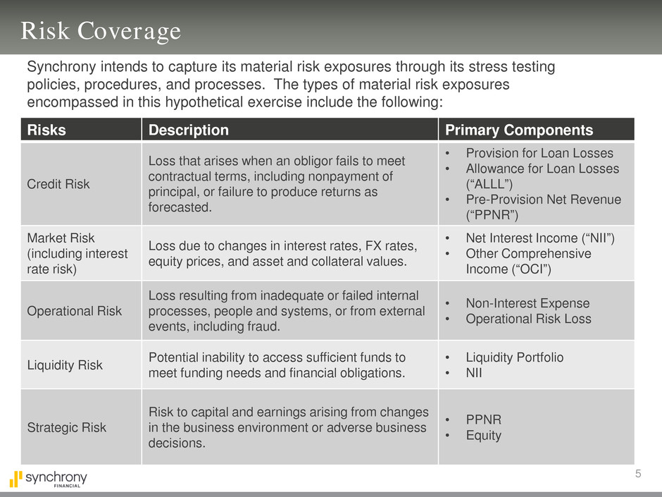 Synchrony intends to capture its material risk exposures through its stress testing