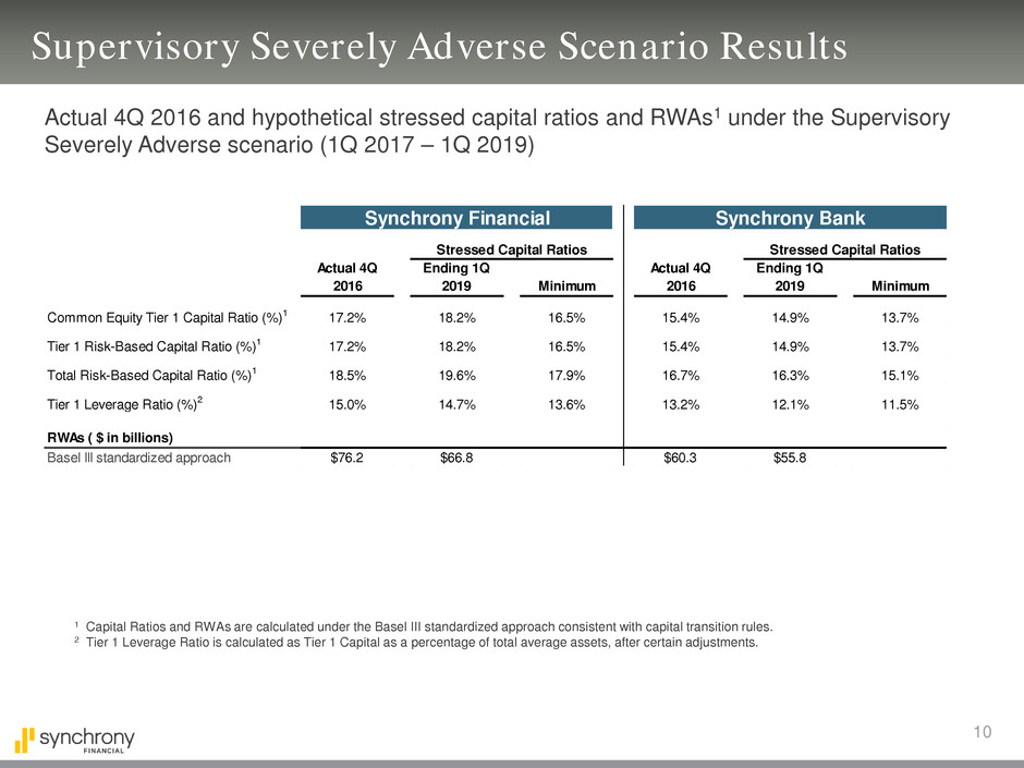 Synchrony and the Bank over a nine-quarter planning horizon from 1Q 2017 through 1Q 2019. Synchrony is required to