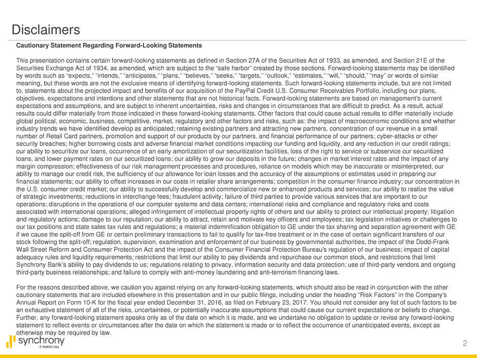 to, statements about the projected impact and benefits of our acquisition of the PayPal Credit U.S. Consumer Receivables Portfolio, including our plans,