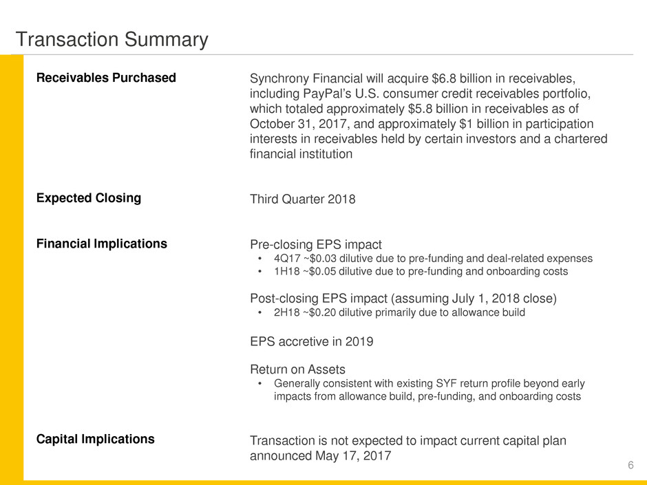 Receivables Purchased Synchrony Financial will acquire $6.8 billion in receivables,