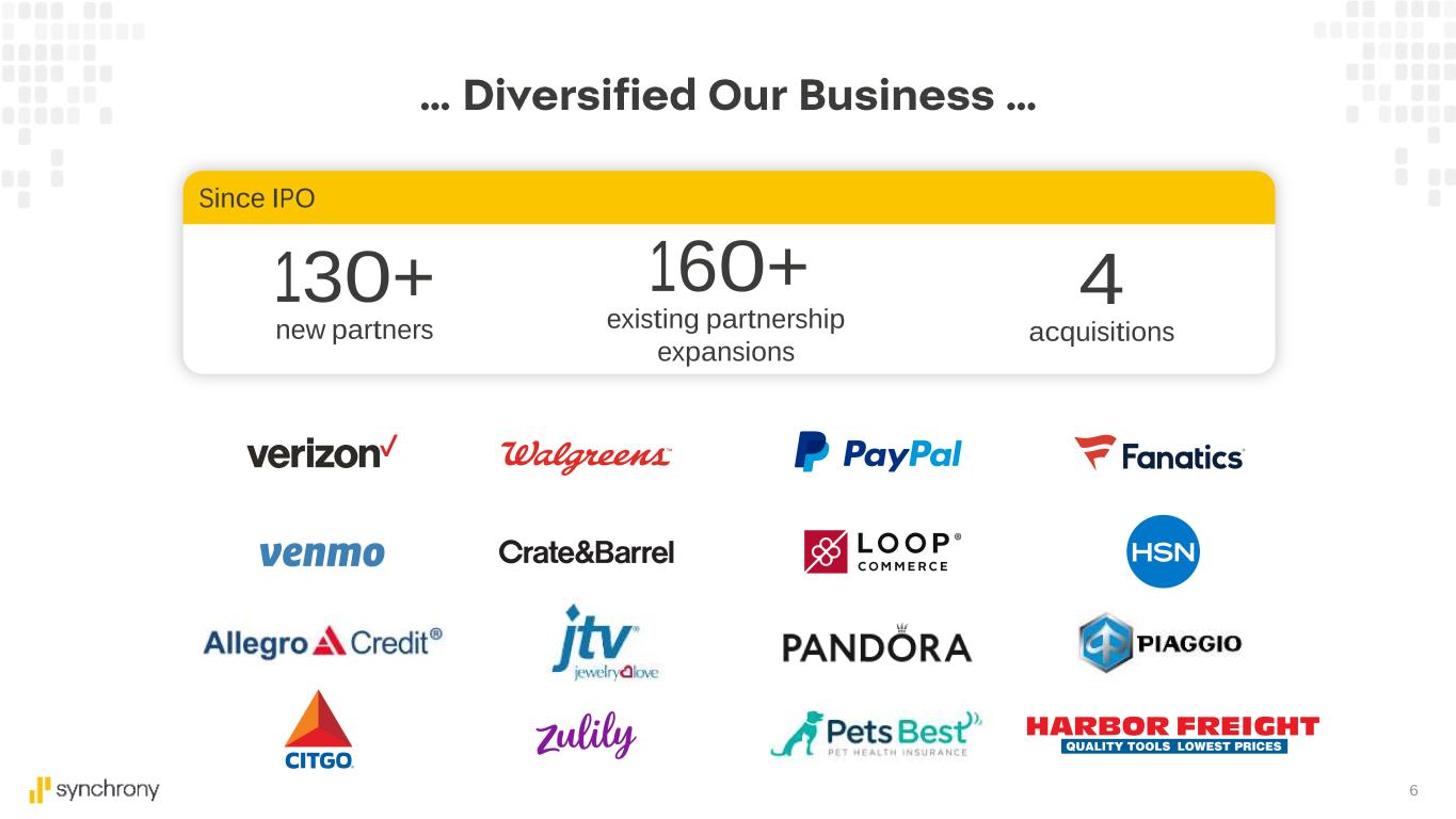 5 1932 We Have Built a Differentiated Business 2014 $933B purchase volume $78B loan receivables 65MM+ active accounts 29 U.S. patents Company founded 2021+ IPO, listed on NYSE Built on 89 years of experience and innovation, powered by bold moves in the past seven years. Since IPO1