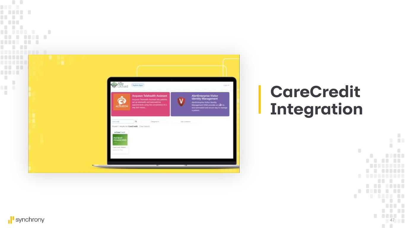 46 Digital & Native Data Centers & Infrastructure CyberAPIsCloud P WERED BY Partner Technology Investment Home Improvement Contractor Auto Shop Powersports Dealer Veterinary Clinic Health Systems Physical Retail eTailer Flexible Technology Powers Partner Integration, Regardless of Size or Tech Sophistication