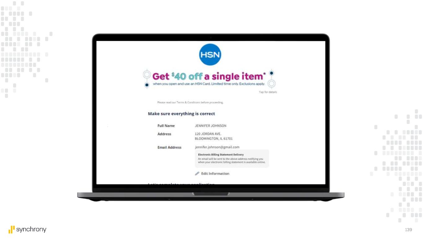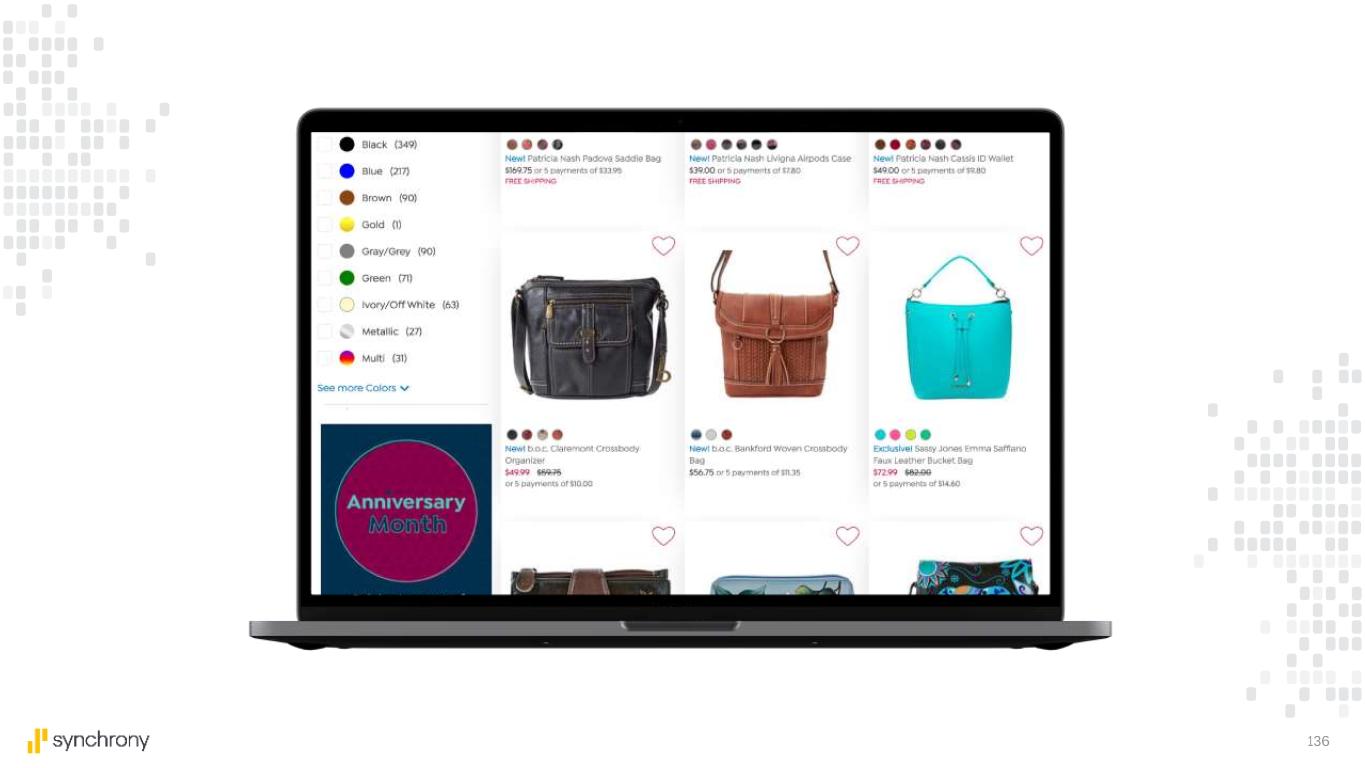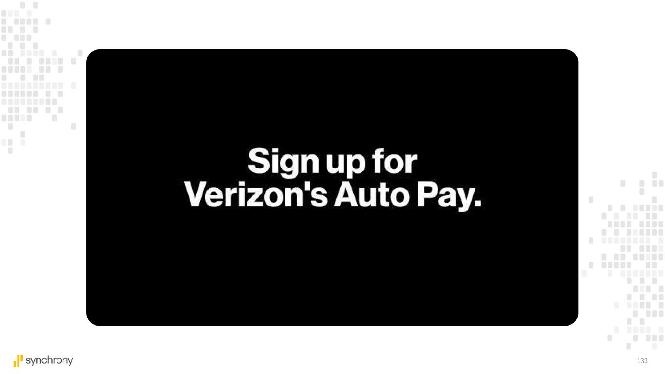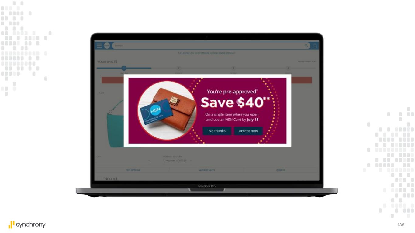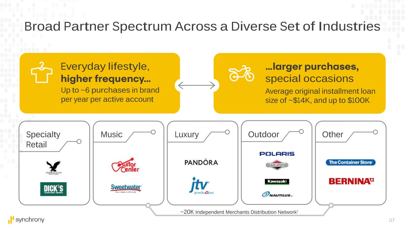 50 Partner Touch PointsSynchrony Touch Points Store Direct-to-Device Partner Web Platforms Email Virtual Agent Synchrony Native App Store POS Partner Native App (SyPI) Text Online Mobile Revolving BNPL/Installments Commercial PLCC DUAL CARD CO-BRAND INSTALLMENTS & LEASING INSTALLMENTS & BNPL SECURED BUSINESS REVOLVING CREDIT INVOICE-BASED SECURED NETWORK SYNCHRONY MC KEY Demonstrated in video Not in video, but Not currently