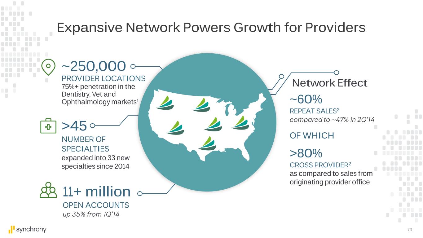 73 Expansive Network Powers Growth for Providers ~250,000 PROVIDER LOCATIONS 75%+ penetration in the Dentistry, Vet and Ophthalmology markets1 >45 NUMBER OF SPECIALTIES expanded into 33 new specialties since 2014 11+ million OPEN ACCOUNTS ~60% REPEAT SALES2 Network Effect >80% CROSS PROVIDER2 as compared to sales from originating provider office OF WHICH