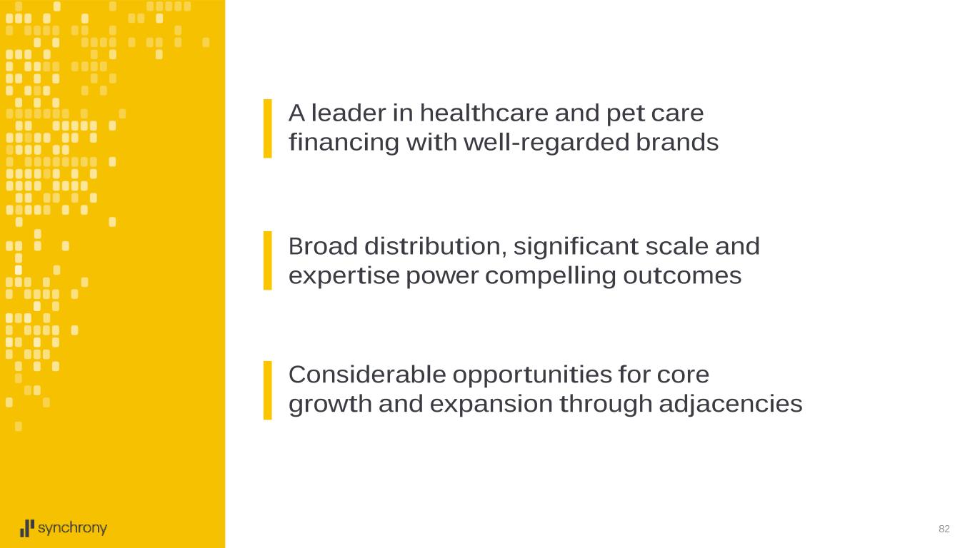 82 A leader in healthcare and pet care financing with well-regarded brands Broad distribution, significant scale and expertise power compelling outcomes Considerable opportunities for core growth and expansion through adjacencies