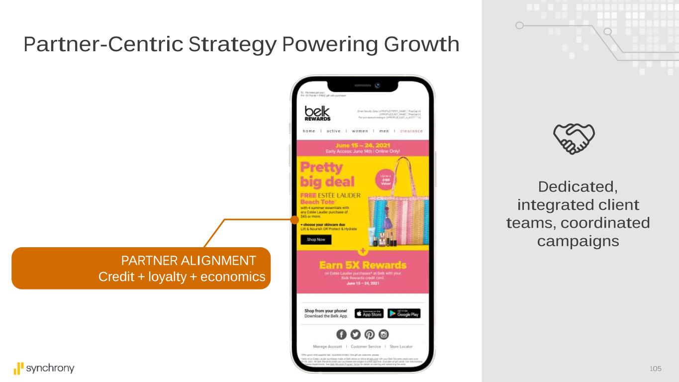 104 Every 1% gain in partner sales penetration drives an incremental ~$1.5B in credit sales1 PARTNER ALIGNMENT Credit + loyalty + economics STRONG VALUE PROPS Top of wallet value, rewards DIGITAL EXPERIENCE Digital shopping integration IN-STORE EXPERIENCE Frictionless in-person shopping Partner-Centric Strategy Powering Growth