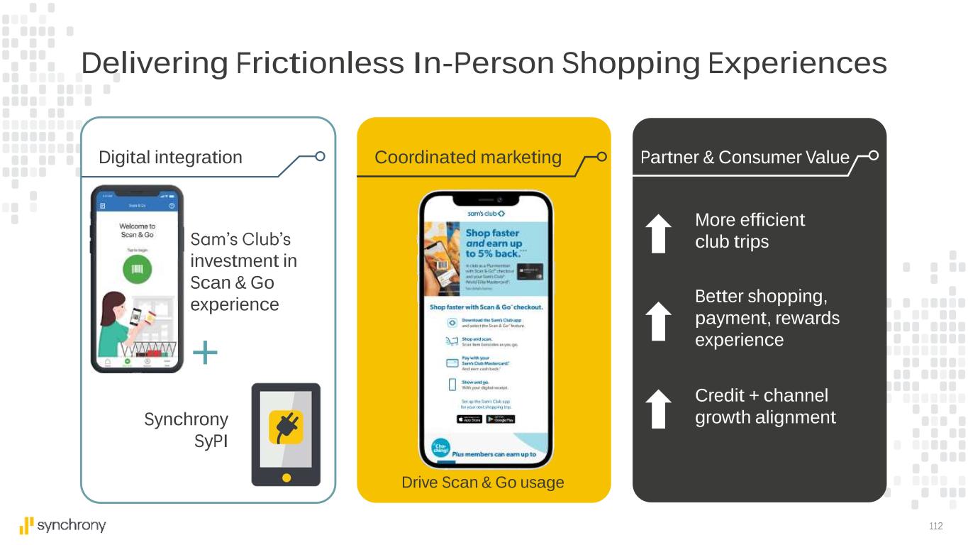 112 Better shopping, payment, rewards experience Credit + channel growth alignment More efficient club trips investment in Scan & Go experience + Synchrony SyPI Drive Scan & Go usage Delivering Frictionless In-Person Shopping Experiences Digital integration Partner & Consumer ValueCoordinated marketing