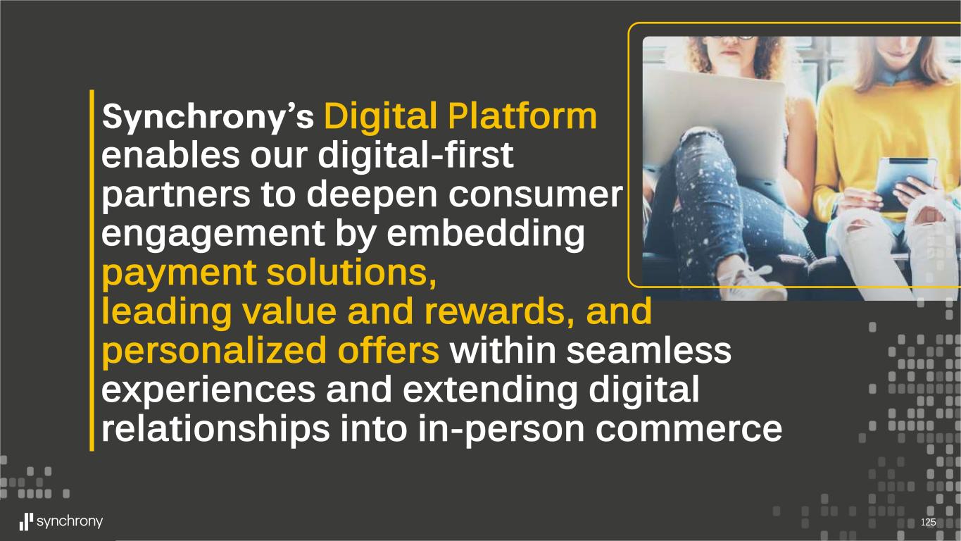 125 Digital Platform enables our digital-first partners to deepen consumer engagement by embedding payment solutions, leading value and rewards, and personalized offers within seamless experiences and extending digital relationships into in-person commerce