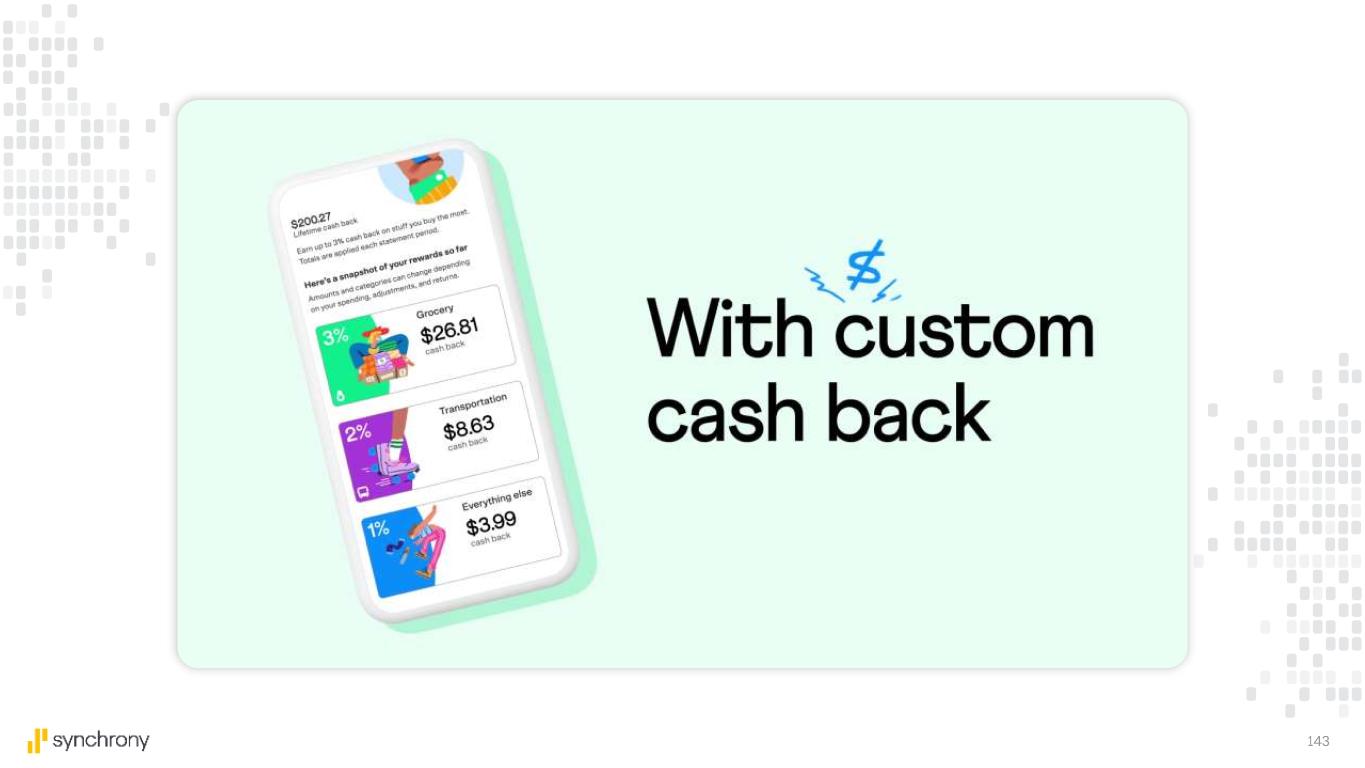 146 Seamlessly Integrating and Delivering Personalized, Intuitive Experiences Engage Apply Use Service Intuitive application and provisioning Personalized engagement and activation Dynamic rewards, effortless payments, consumer control Partner-native servicing Embedded within digital partner environments, leveraging core Synchrony tech stack