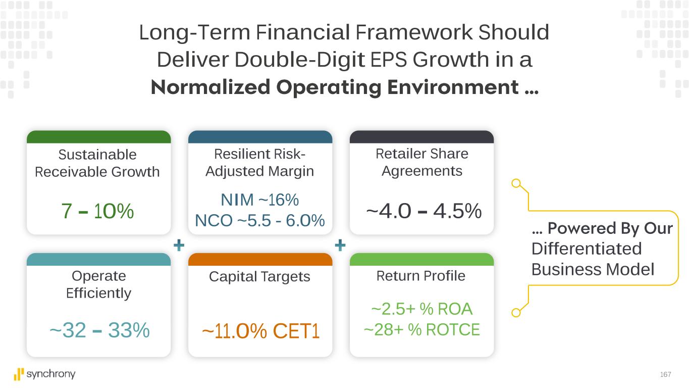 156 13.2% 13.3% 21.1% Broader Peers Direct Peers Synchrony Interest & Fee Yield 3.7% 3.4% 5.6% Net Charge-Offs All comparisons based on FY2019 Broader Peers Direct Peers Synchrony 9.5% 9.9% 15.5% Risk-Adjusted Yield (RAY) Broader Peers Direct Peers Synchrony -Adjusted Margins >560 bps