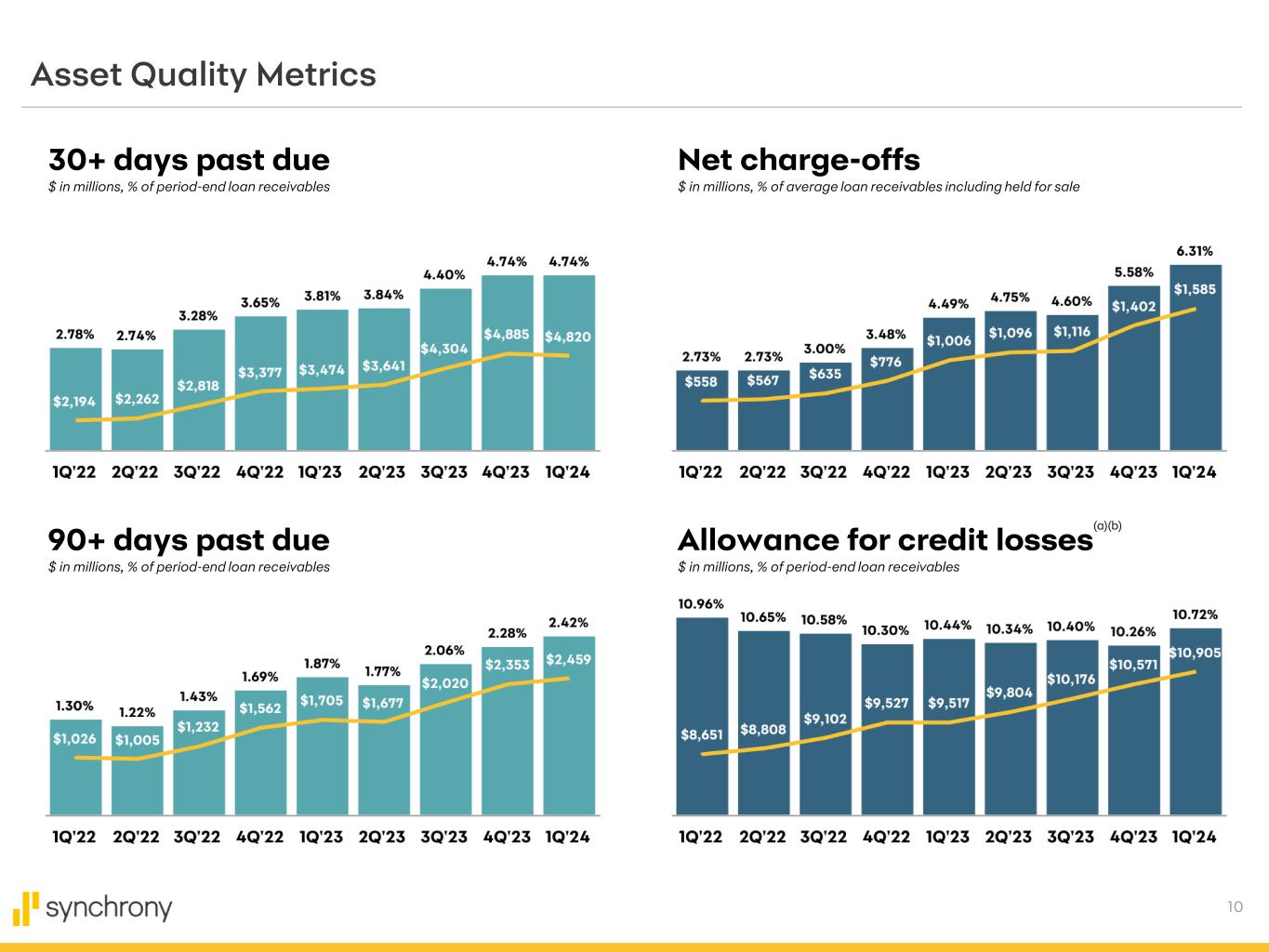 10 Asset Quality Metrics Allowance for credit losses $ in millions, % of period-end loan receivables Net charge-offs $ in millions, % of average loan receivables including held for sale 30+ days past due $ in millions, % of period-end loan receivables 90+ days past due $ in millions, % of period-end loan receivables (a)(b)